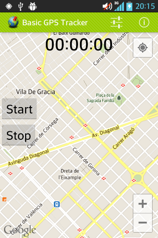 It will track your route and will show up information like time, distance and speed. Tracks will be stored for later consulting. Configures the map with options in the left menu.