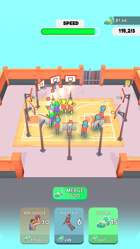 Guadagna punti, acquista più giocatori di basket e uniscili.