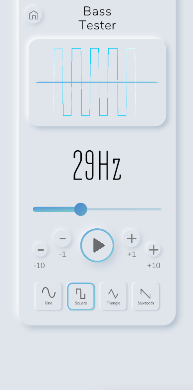 Presentazione dell'app Bass Frequency Test, lo strumento definitivo per testare le capacità dei bassi dei tuoi altoparlanti e dispositivi. La nostra app ti consente di riprodurre un'ampia gamma di frequenze dei bassi super basse e di capire quanto bassi possono riprodurre i tuoi altoparlanti. Con un'interfaccia intuitiva e facile da usare, puoi regolare la frequenza utilizzando un dispositivo di scorrimento e scegliere tra diversi tipi di frequenza.