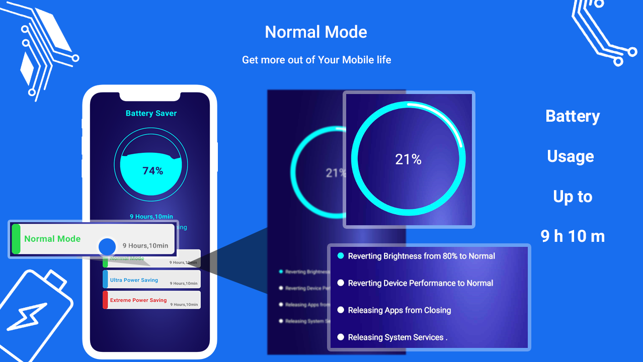 Se sei stufo o batteria scarica e la batteria si scarica molto rapidamente in breve tempo. Quindi questa applicazione ti aiuterà a migliorare le prestazioni della batteria migliorando le prestazioni o la batteria facilmente. Chiude il sistema di app predefinite come Wi-Fi e Bluetooth che si restringono e assorbono la batteria e fanno rallentare la batteria.