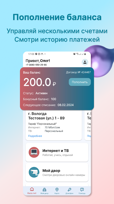 “Baza.net. My City" è un'applicazione per tutti i residenti di Vologda e gli abbonati dei provider Internet.