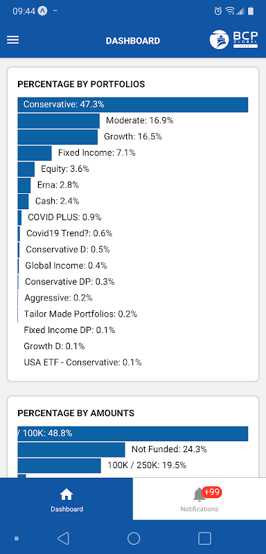 - Accesso immediato al patrimonio totale, ai conti aperti e alle suddivisioni del portafoglio.