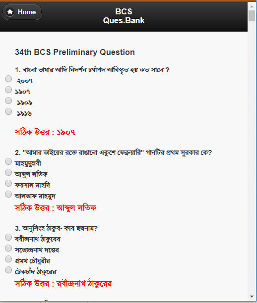 BCS is the largest public examination conducted by Bangladesh Public Service Commission to recruit people to Bangladesh Government Civil Services. This test examines lots of qualifications. The candidates have to know many things to overcome this exam. Before starting the preparation for this exam one has to know the question pattern of this exam. There is no alternative of previous question papers for getting the idea of questions pattern. I have prepared this app so that the candidates can get the idea of BCS questions pattern. The app is enriched with the BCS preliminary question papers from 10th to 39th exam and their solutions. I hope it will help the reader very much for the BCS preparation.