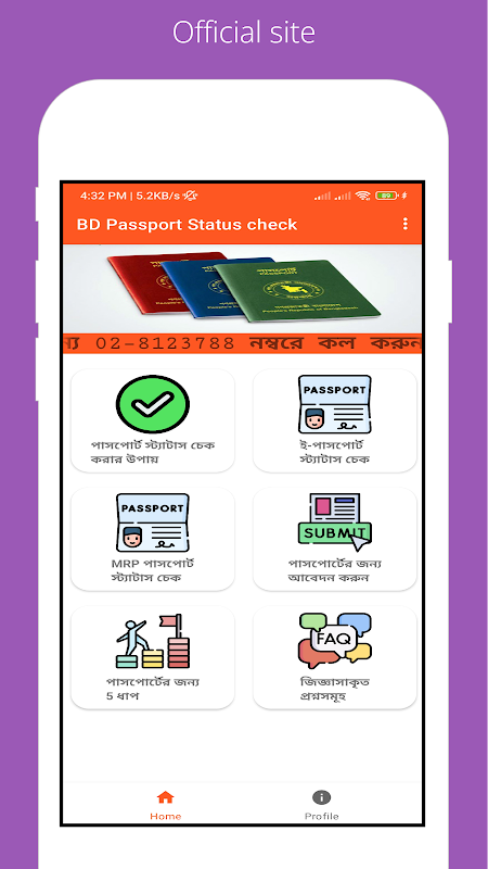 অ্যাপটি দ্বারা এমআরপি বা ই-পাসপোর্ট স্ট্যাটাস চেক / নির্দেশনা / আবেদন কিভাবে করতে হয় তা শেখানো Va bene