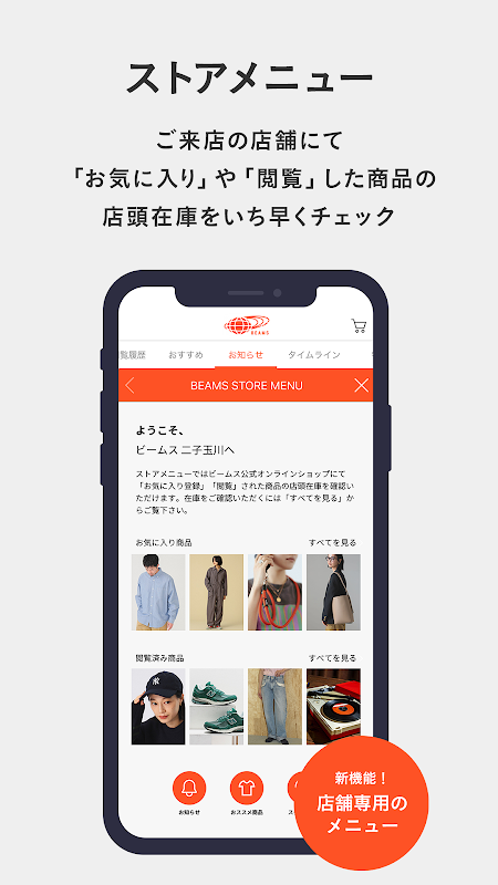 L'app offre una varietà di contenuti con il tema "rendere lo shopping BEAMS più divertente e conveniente", comprese le ultime informazioni BEAMS, campagne, informazioni sulle vendite, stile del personale e funzioni della tessera associativa.