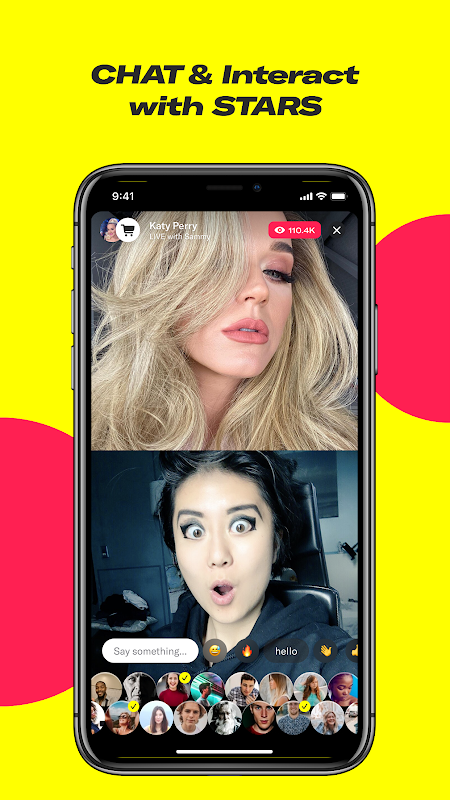 ● Chatta in tempo reale con i fan di tutto il mondo, invia messaggi con un "botto" o fai piovere