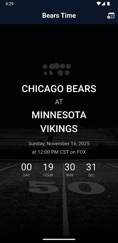 Avvertenza: questa applicazione non è in alcun modo affiliata ai Chicago Bears o alla NFL. Questa applicazione, né il suo sviluppatore, sono responsabili di eventuali problemi legali che potrebbero sorgere nell'utilizzo della stessa.