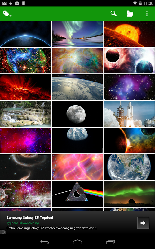- Also contains a live wallpaper that cycles through images that are stored on your device.