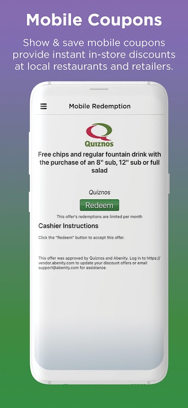 Mostra e salva coupon per dispositivi mobili offrono sconti immediati in negozio presso ristoranti e rivenditori nelle vicinanze.
