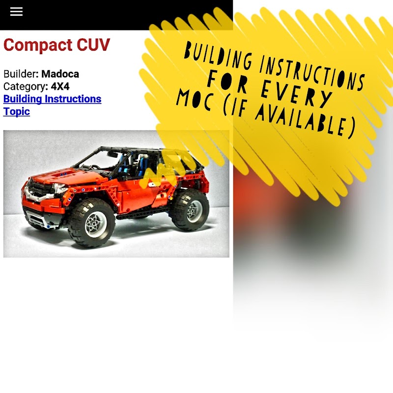An unofficial app to Explore the best of the best MOCs for LEGO® Technic.