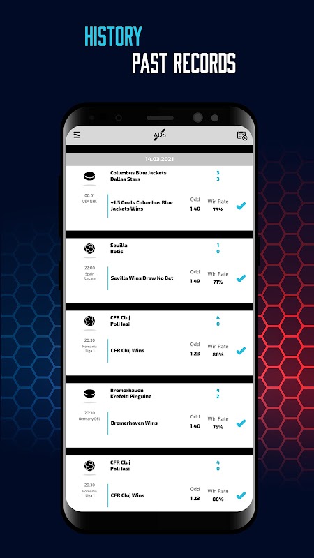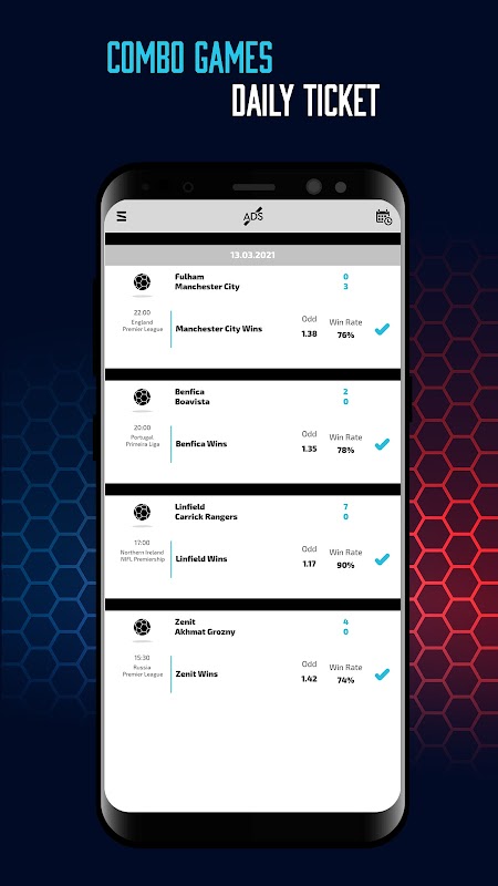 • Various betting tips with big odds and sure matches, 1x2, over / under, handicaps, BTTS, double chance and much more