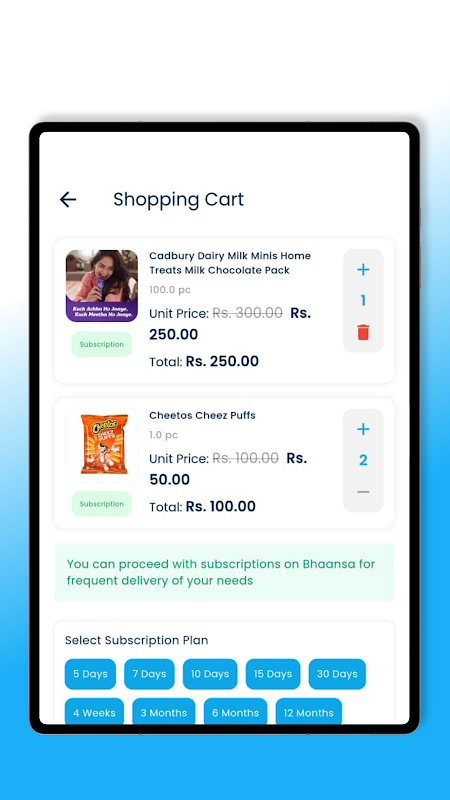 Bhaansa è una piattaforma di alimentari e supermercati online affidabile che serve i clienti in Nepal. La nostra missione è fornire generi alimentari di alta qualità, prodotti freschi ed elementi essenziali quotidiani con praticità e affidabilità. Il nostro obiettivo è rivoluzionare la spesa offrendo un'esperienza digitale fluida, prezzi competitivi e consegne puntuali.