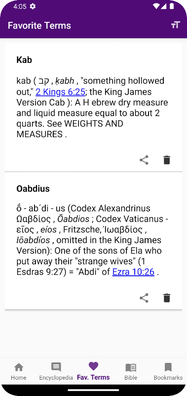 Goditi un'interfaccia user-friendly e intuitiva, garantendo un'esperienza di navigazione senza interruzioni. Che tu sia un appassionato studioso o un ricercatore curioso, la nostra app Bible Encyclopedia offre una potente piattaforma per esplorare la conoscenza biblica senza sforzo.
