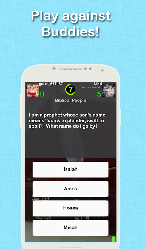 Riprodurre la Bibbia Trivia con i tuoi amici! Si tratta di una Bibbia Trivia game consente di riprodurre la Bibbia vivere contro persone di tutto il mondo, o contro i tuoi amici.