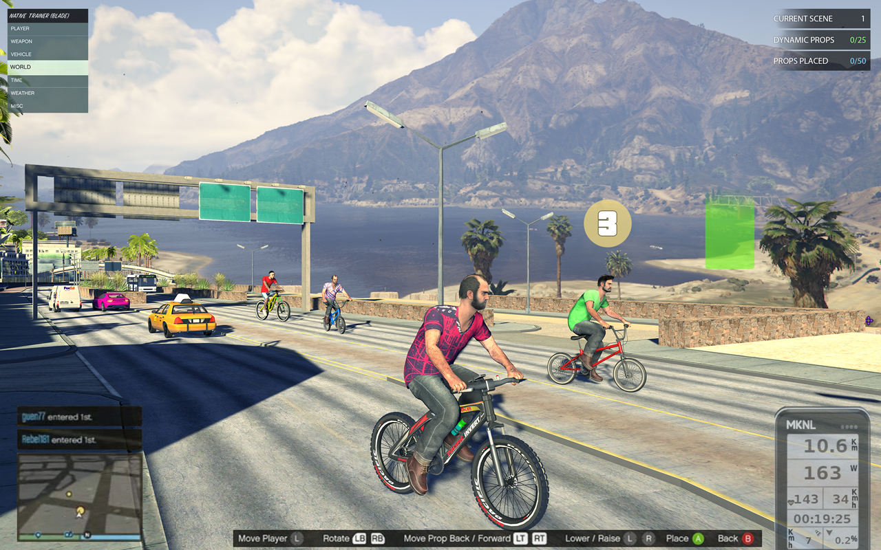 diverse viste meravigliose della macchina fotografica, ad esempio Vista posteriore e bicicletta vista di guida