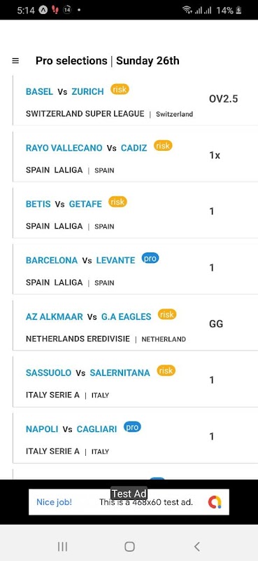 App di pronostici calcistici giornalieri per più di 15 partite. Puoi scegliere le quote e ti consente persino di selezionare quote casuali. Provalo.