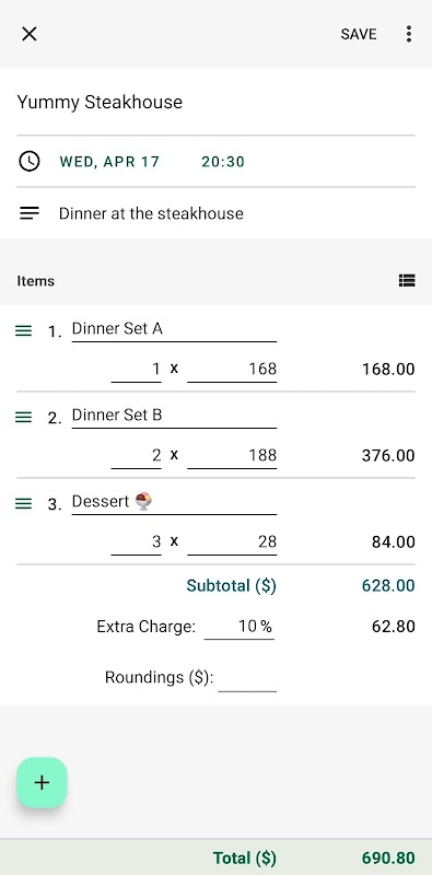 3. Inserisci eventuali supplementi (o sconti: puoi inserire un numero negativo) e gli arrotondamenti.