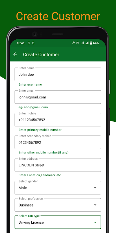 Crea e salva tutti i tuoi clienti in pochi clic. Crea cliente aggiungendo il suo nome, e-mail e altri dettagli.