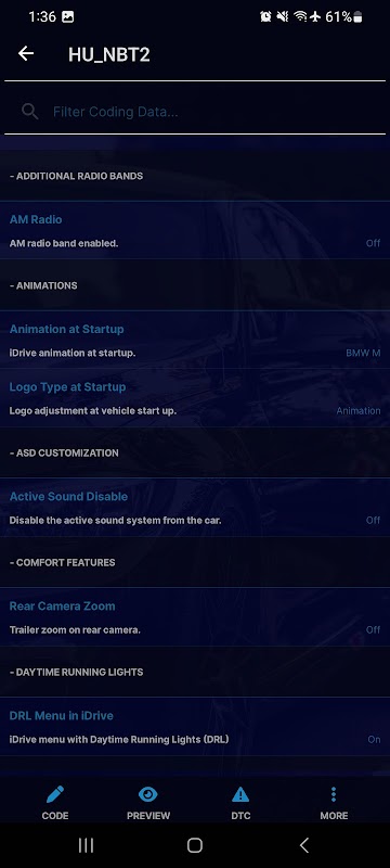 • Sul lato mobile, l'applicazione mobile di BIMMERUTILITY funge da app di codifica di prim'ordine. Consente agli utenti di codificare qualsiasi parametro dell'auto e modificare i moduli di codice FA o VO, il tutto sulla base dei dati più recenti utilizzati dai programmatori professionisti.