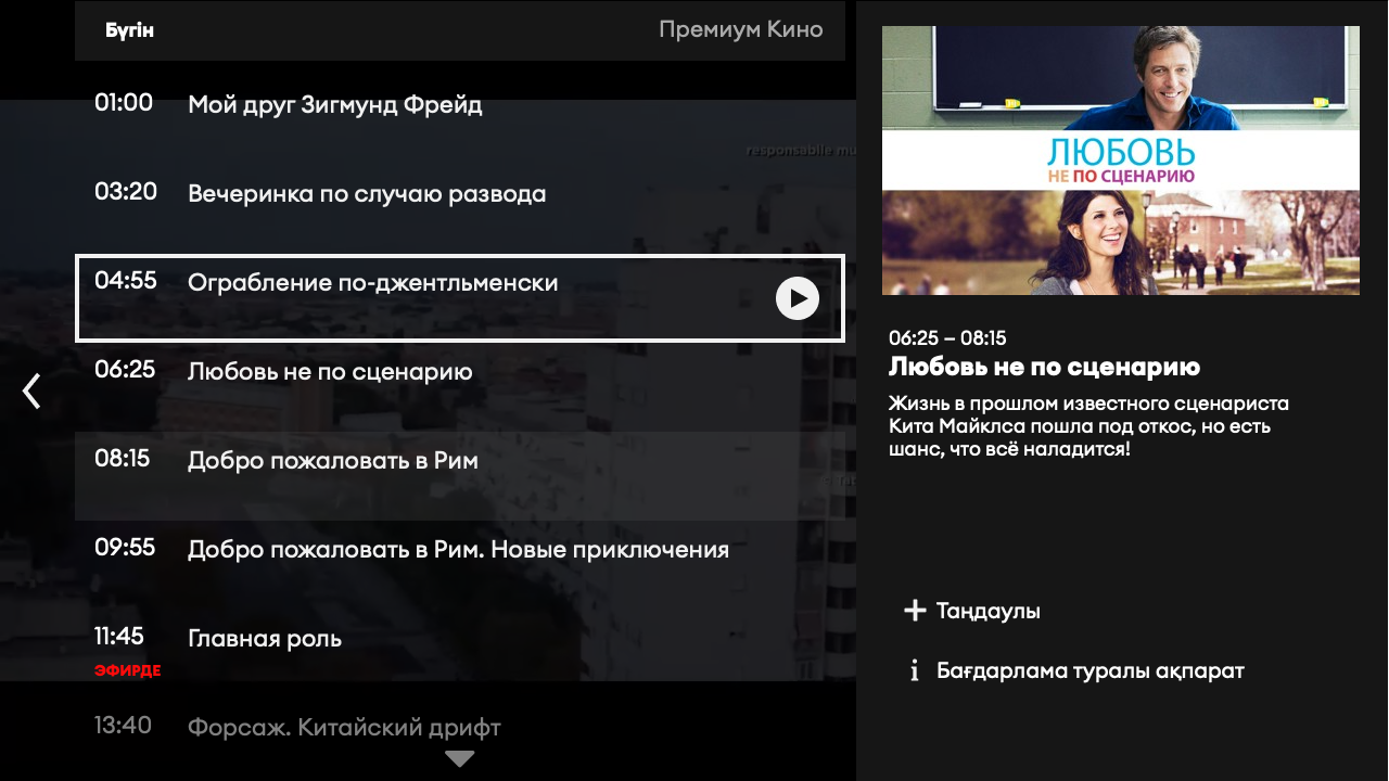 L'interfaccia intuitiva di Birge.tv ti consente di scegliere liberamente le serie TV kazake e i contenuti TV kazaki. Personalizza l'applicazione in base alle tue preferenze e goditi una varietà di serie TV kazake, serie online, film e cartoni kazaki secondo i tuoi gusti.