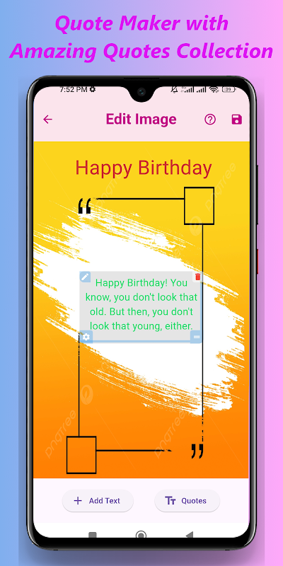 Ti presentiamo Birthday Frame & Quotes: il compagno digitale definitivo per creare feste di compleanno memorabili! Questa innovativa applicazione mobile è progettata per trasformare i tuoi auguri e i tuoi ricordi di compleanno in meravigliosi ricordi digitali personalizzati. Che tu stia cercando di creare l'augurio di compleanno perfetto, creare immagini memorabili di cornici per foto o esplorare una vasta raccolta di citazioni ispiratrici e disegni di torte, questa app ha tutto ciò di cui hai bisogno per rendere straordinario ogni compleanno.