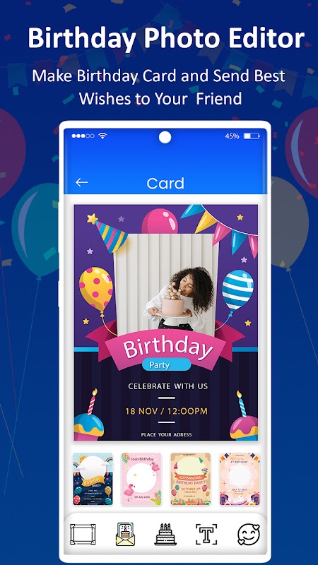 Scarica questo uno dei migliori "Biglietti di compleanno con editor di foto: biglietto di auguri di compleanno" e sorprendi i tuoi amici con i migliori biglietti di auguri modificati con foto.
