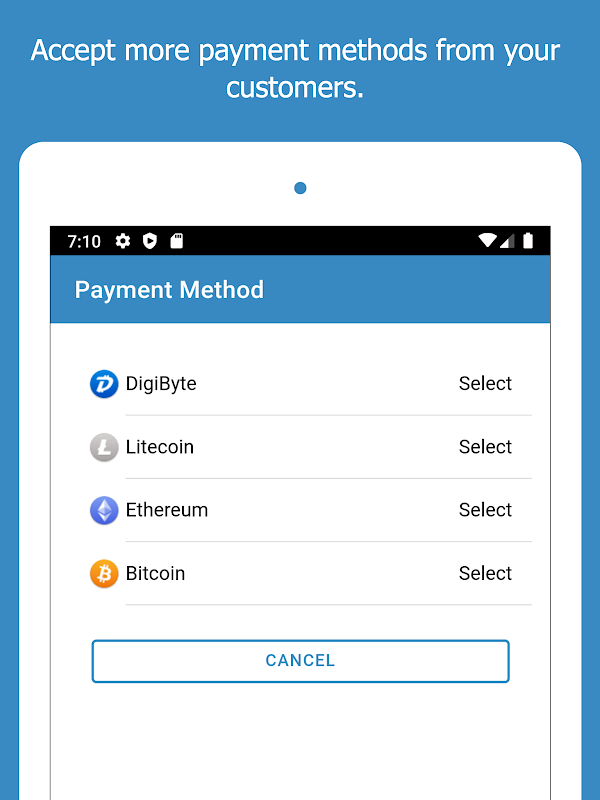 • Accept: Bitcoin, Ethereum, Litecoin and DigiByte