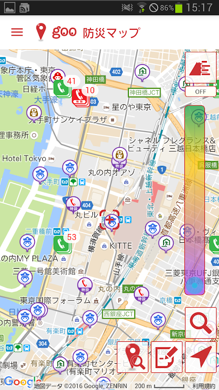 ・標高に応じた施設表示に対応しており、標高バーで絞り込みが可能です。(10m以下の施設をフィルタするなど)