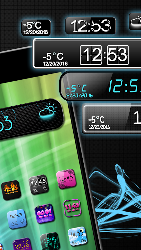 If you ever personalized your device with black wallpapers and backgrounds – you will definitely adore our cool digital watches with black theme! Set this elegant watch face on your desktop and explore its options: you can choose your fave black background from our collection, set the alarm app, or check the "local weather". Enjoy its minimalist design and use our cool phone gadgets for Android™ as a replacement for mens black watches! You can never go wrong with color black and white – see for yourself with our black weather widget! Forget about transparent clock and weather widget! We offer weather and clock widget black in color, which you can free download and be right on time always! Black watches for men or ladies are the most stylish fashion accessory. So, be on point with our phone accessories and never miss another hour or minute! Get a black diamond on your new favorite mobile gadget and feel elegant! Download cool digital watches with black color themes right now! "Black Digital Clock Widget" can serve as digital watches for kids as well – pic from black and white pictures and select the right one for your youngsters! They will adore this digital led clock gadget!