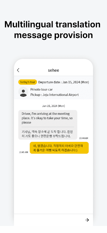 La lingua coreana inserita dall'autista del tour viene automaticamente tradotta nella lingua del posto del tour e trasmessa.