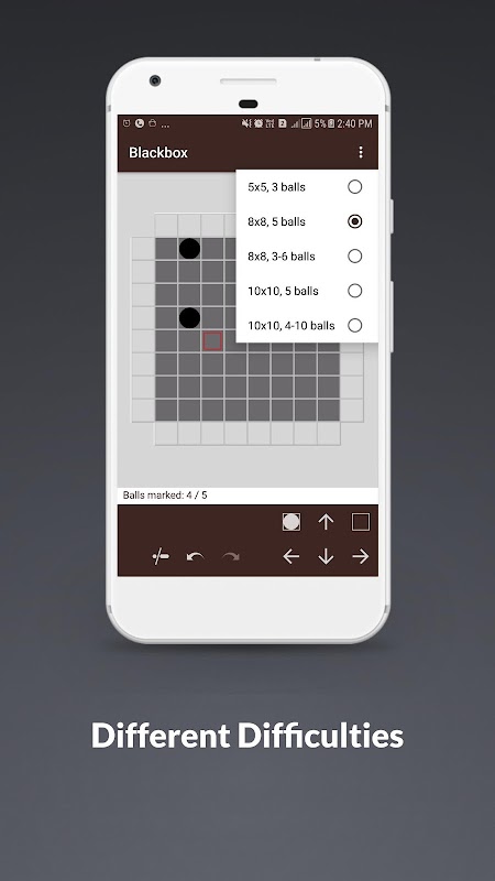 You can place guesses as to the location of the balls, based on the entry and exit patterns of the beams, once you have placed enough balls a button appears enabling you to have your guesses checked.