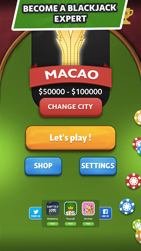 Giocare a Blackjack 21 in un'atmosfera da casinò di Las Vegas e battere il banco al suo stesso gioco!