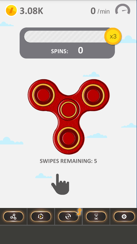 Swipe to rotate fidget spinner to set best spin and to reach high score in 5 swipes.