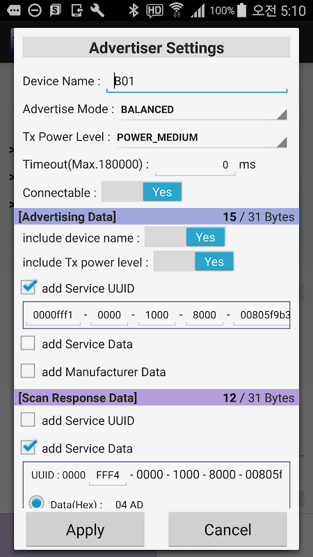 È possibile eseguire la scansione di dispositivi remoti BLE o pubblicizzare come un faro. E si può anche impostare i servizi, le caratteristiche e descrittori.