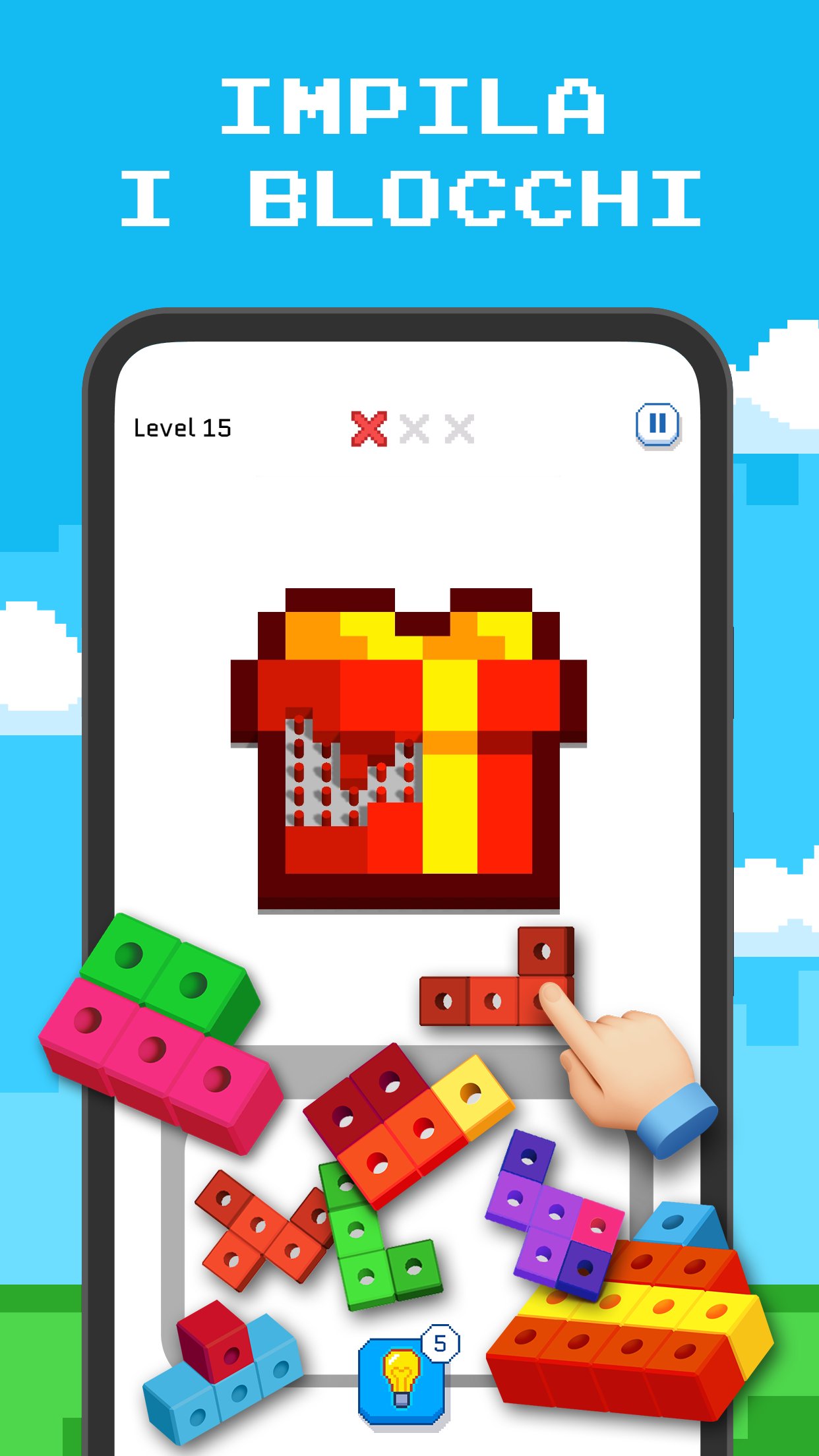 - Allenare la logica: Metti in gioco le tue abilità di pensiero logico mentre pianifichi strategie e risolvi puzzle di blocchi. Ogni livello presenta una nuova sfida che metterà alla prova e migliorerà la tua capacità di pensare criticamente e trovare soluzioni creative.