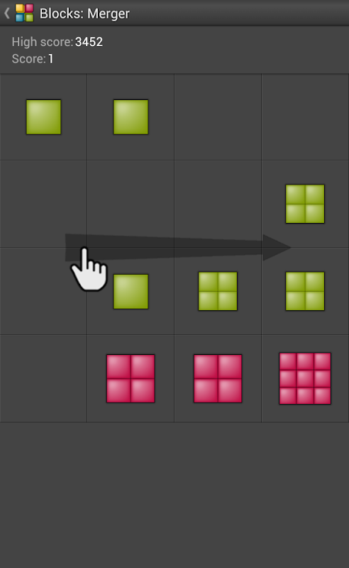 - Swipe the board to the left, right, up or down to move all the blocks and combine those with the same color and level.