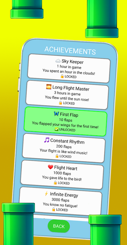 Tocca lo schermo per guidare l'uccello attraverso passaggi sempre più stretti e ostacoli sempre più veloci. Più giochi, più il gioco diventa difficile, rendendo ogni volo una nuova prova di abilità. Non c'è spazio per errori qui. Solo concentrazione, riflessi e il desiderio di volare più lontano dell'ultima volta.