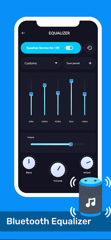 Equalizzatore avanzato: personalizza il tuo audio con preimpostazioni come classica, dance, hip hop e altro ancora. Salva le tue impostazioni e goditi un suono migliorato con potenziamento dei bassi ed effetti virtuali.