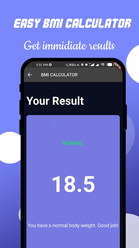 L'app presenta un'interfaccia intuitiva che semplifica il calcolo del tuo indice di massa corporea e la comprensione del suo significato. Puoi inserire altezza e peso in unità metriche o imperiali e l'app calcolerà automaticamente il tuo indice di massa corporea.