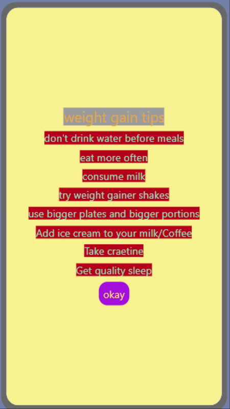 può aiutare a determinare se il tuo corpo è sano o meno. Questa APP aiuta a trovare la salubrità utilizzando il peso della persona.