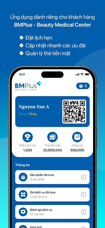 BMPlus è un'applicazione dedicata ai clienti affezionati di BMPLUS. L'applicazione aiuta i clienti a pianificare comodamente i servizi e a monitorare le informazioni sulla scheda trattamento e lo storico delle fatture presso la Spa.