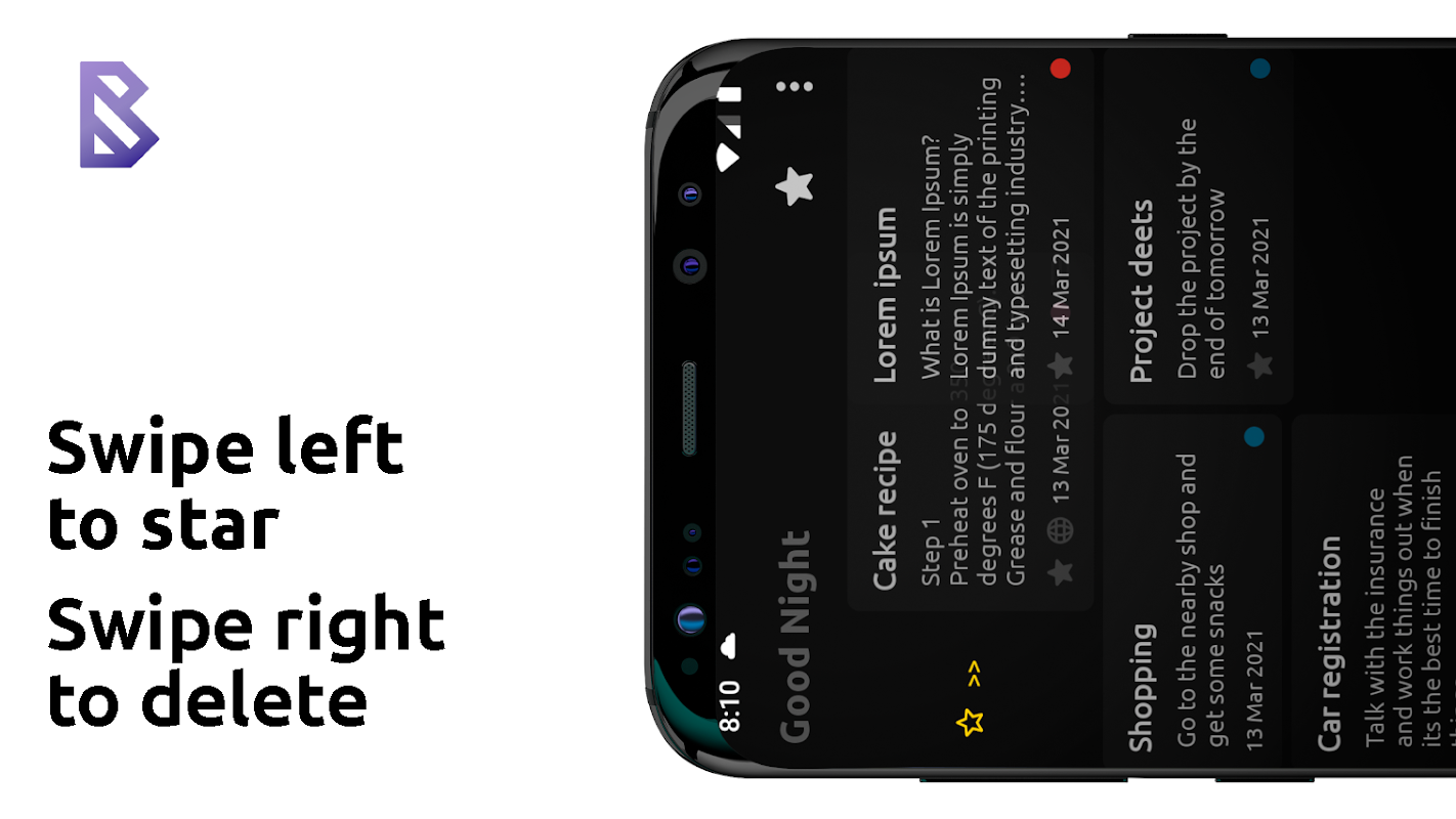 L'app è progettata nel modo più semplice possibile per consentirti di digitare qualsiasi cosa ti venga in mente nel modo più rapido. Quando apri la lista delle cose da fare devi solo inserire informazioni sulla tua nota. Infine, puoi salvarlo e accedervi quando lo desideri!