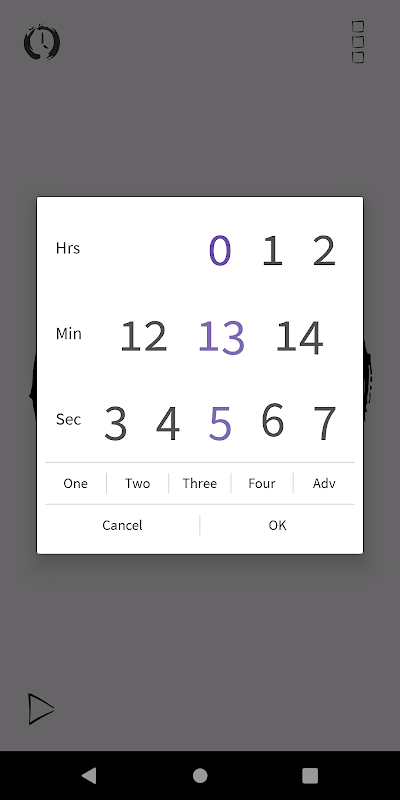 🔷 Metti in pausa/riprendi tramite il pulsante in basso a sinistra e ferma il timer tramite il pulsante in basso a destra. Il pulsante in alto a destra è il pulsante delle preferenze.