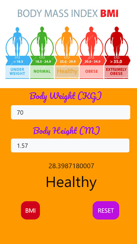 La nostra app BMI è uno strumento semplice e intuitivo che ti aiuta a monitorare e monitorare il tuo indice di massa corporea (BMI) per raggiungere i tuoi obiettivi di salute e fitness. Immettendo facilmente altezza e peso, l'app calcola il tuo indice di massa corporea e fornisce consigli personalizzati per mantenere un peso sano. Rimani motivato e in linea con la nostra interfaccia intuitiva e le funzionalità di monitoraggio dei progressi. Prendi il controllo della tua salute oggi con la nostra app BMI!