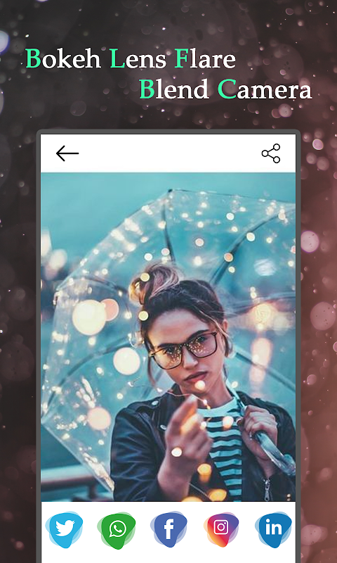 > Bokeh Lens Flare Blend Camera Square Photo Effects supports pictures combiner therefore you'll produce double exposure camera impact on live camera preview, and make mix collage picture frame with multiple photos. Take good auto beautify selfie with selfie camera, Directly capture selfie picture from pic blender impact.