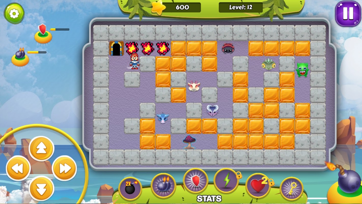 • Ci sono vari potenti pickup posizionati sotto i blocchi che rendono il tuo gioco facile da vincere. Questi pickup includono Bomb Range, Double Bomb, Shield, Speed, Lives e Key.