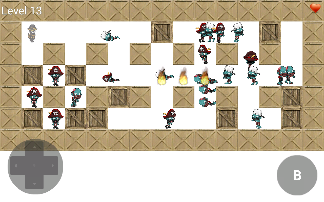 Explode the walls and collect the goods from underneath. When you get a barrel bomb you should know that the explosion area will expand. If the time bomb is released, place it with the R key and detonate it with the X key. To pass the level you must destroy all zombies. Good games.