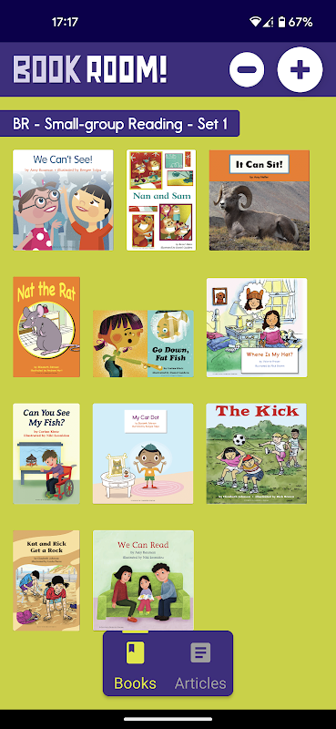Accedi ai lettori decodificabili di Collaborative Classroom per gli studenti tramite BookRoom! app. I lettori disponibili supportano Essere un lettore, set di letture per piccoli gruppi 1–6 e SIPPS. I libri vengono caricati nell'app scansionando il codice a barre sul retro del libro cartaceo o inserendo un codice fornito tramite il nostro portale di apprendimento. Una volta caricato un libro, gli studenti possono accedervi sul proprio dispositivo per rileggerlo in un secondo momento. I libri possono essere facilmente caricati e rimossi nel caso in cui più studenti debbano condividere un dispositivo.