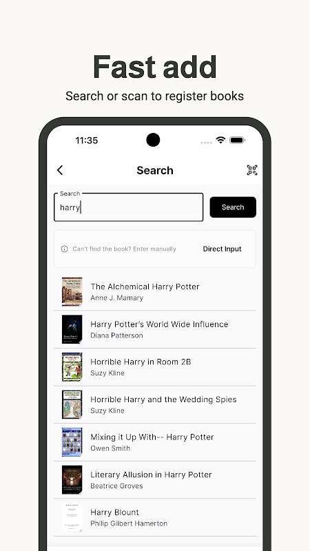 2. Registrazione rapida del libro: cerca o scansiona il codice a barre per visualizzare la copertina e le informazioni contemporaneamente!