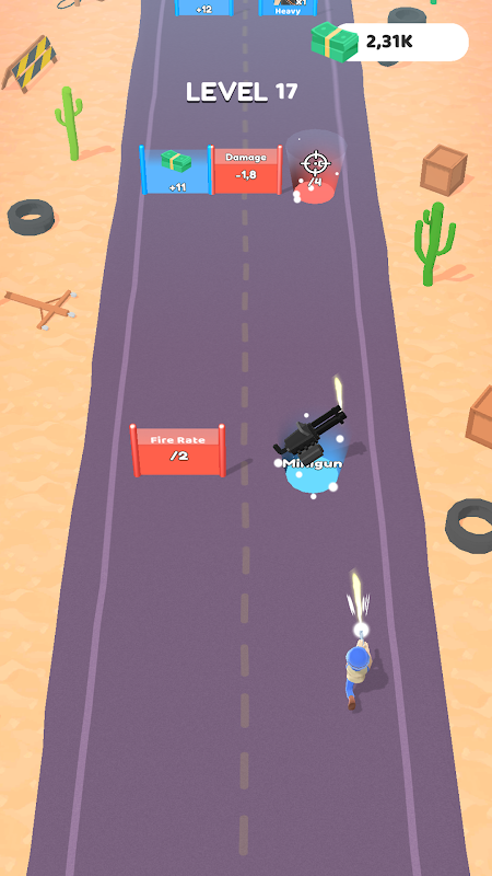 I tuoi eroi sparano automaticamente: tu devi solo schivare, mirare e scegliere la posizione migliore sulla strada. Elimina i nemici prima che ti raggiungano, sopravvivi fino al traguardo e poi scarica la tua potenza di fuoco su sacchi di denaro, casseforti e colonne di denaro per accaparrarti il bottino più grande.